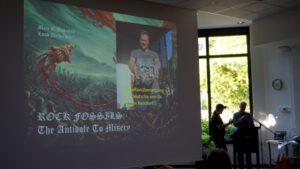 Die Entstehungsgeschichte der Ausstellung wurde am Eröffnungsabend launig von Professor Dr. Mats E. Erikson auf Englisch und passender Übersetzung von Dr. Achim Reisdorf mit untermalenden Leinwandeinspielungen vorgetragen. Tenor: Wissenschaft ist anstrengend, ist spannend und heißt: manchmal über Wochen und Monate dranbleiben, keine Freunde, keine Familie sehen, sondern forschen, forschen, forschen – dann bleibt halt nur Heavy Metal als Ausgleich.