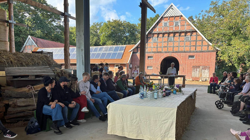Wir eröffneten die Veranstaltung anlässlich des bevorstehenden Erntedankfestes (05.10.2025) mit einer kleinen Erntedank-Feier. Diese wurde von Werner (einem Mitglied der Gemüsegemeinschaft Bottorf) abgehalten.