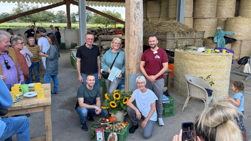 Am 28. September 2025 fand die vierte und für dieses Jahr letzte vom Ernährungsrat Osnabrück – Stadt und Land e.V. initiierte Hof-, Feld- und Gewächshaus-Besichtigung einer Solidarischen Landwirtschaft* im Osnabrücker Land statt. Die Bottorfer Gemüsegemeinschaft auf dem Hof Maßmann hatte sich gut auf die ca. 55 Besucher:innen vorbereitet und erfolgreich bestes Spätsommerwetter bestellt. Zu unserer Freude nahmen sowohl Doris Schmidt, Bürgermeisterin aus Menslage, als auch der Samtgemeinde-Bürgermeister Michael Bürgel an der Veranstaltung teil.