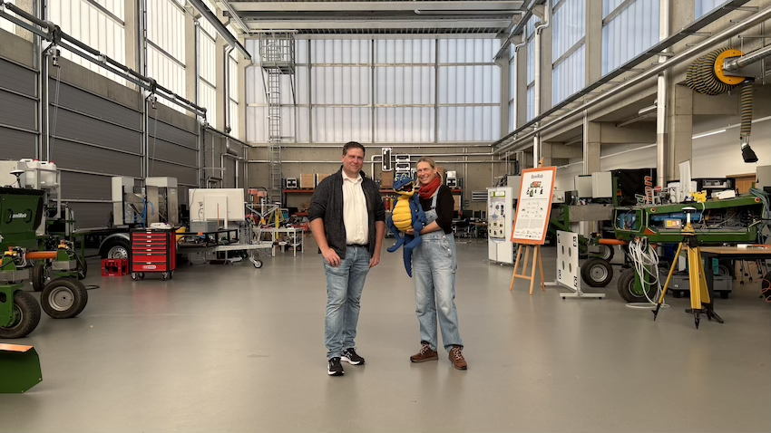 Unser letzter Stopp ist bei den kleineren Robotern, die gefallen Valentin am besten, kein Wunder, denn auch mich erinnern sie ein wenig an kleine Marsroboter. Laut Stefan können die hier Studierenden damit vieles schon mal im Kleinen probieren, bevor es dann auch bei den großen Maschinen angewandt werden kann. Das Ziel der Forschenden ist es, mit KI-gestützter Robotertechnik die Landwirtschaft zu verbessern und die Arbeit der Landwirte zu vereinfachen. Und ganz nebenbei wird hier natürlich sicher auch weiter an einem weiteren Weltmeistertitel getüftelt. Drache Valentin schaut sich neugierig die kleinen Roboter an und hat eine Frage: „Stefan, könnte den Robotern das Aufspüren von Ostereiernestern samt Schokoladendepot gelingen?“ Stefan schmunzelt über diese Idee und ist sich ziemlich sicher, dass seine Robis das locker hinbekommen. Valentins Nachfrage, ob er sich zu Ostern einen ausleihen darf, wird ohne zu zögern mit einem Ja beantwortet, ein Drache im Glück! Als kleine Gegenleistung empfiehlt sich Valentin als guter Roboter-Namensausdenkdenker. Mit diesem typischem Valentinwort beende ich nun diesen Bericht. War das ein spannender Besuch!