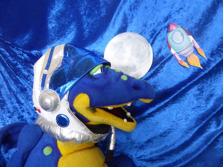 Noch ein Tipp in eigener Sache: Mit meinem kleinen Drachen Valentin (dem größten Weltraumfan der Welt) und mir ist es auch möglich zum Mond und sogar bis ans Ende unseres Planetensystems zu fliegen, ganz ohne Vorkenntnisse und Astronautentraining. Mithilfe einer kleinen Rakete, zuzüglich einer (Antriebs)Prise Fantasie machen wir uns unregelmäßig regelmäßig auf die Reise. Das heißt: An alle Einrichtungen mit Kindern, ihr könnt uns mit dem Programm „Drache Valentin wird Astronaut“ buchen. Und an alle Kinder (plus Familien): ihr könntet live dabei sein, öffentliche Termine findet ihr auf meiner Webseite.
