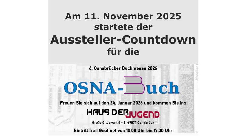 Am 26. Januar 2026 wird die 6. Osnabrücker Buchmesse im Haus der Jugend stattfinden. Alle Ausstellerinnen und Aussteller werden in einem täglichen Countdown, der am 11. November gestartet ist, vorab angekündigt.