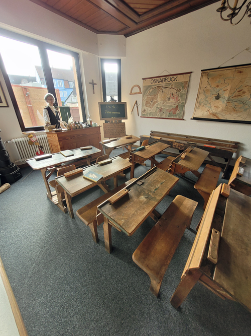 Höhepunkt des Museumsbesuches ist nicht nur für jüngere Besucher der historische Klassenraum mit z.T. mehr als 100 Jahren alten Schulbänken, Katheder, Kanonenofen und historischen Wandkarten.
