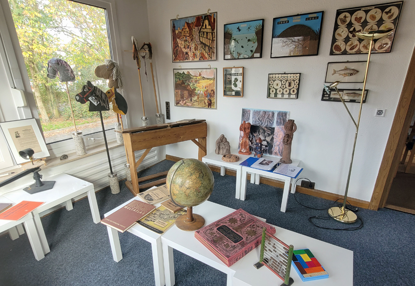 In vier Räumen präsentiert das Museum eine Vielzahl an historischen Exponaten der letzten 150 Jahre. Hinzu kommen authentische Lehrmaterialien, Schulwandbilder, Fibeln sowie Schulbücher aus vergangenen Unterrichtsepochen. Eine Laterna Magica, diverse Schulranzen aus Holz und Leder inklusiv früherer Schreibutensilien versprechen nicht nur einen hohen Erkenntnisgewinn, sondern auch Staunen und Schmunzeln über längst vergangene Zeiten.