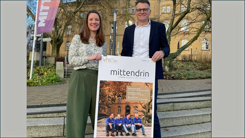 Hochzufrieden mit dem neuen VHS-Magazin: Tobias Pischel de Ascensão und Ann-Christine Wöhler. Foto: VHS OS