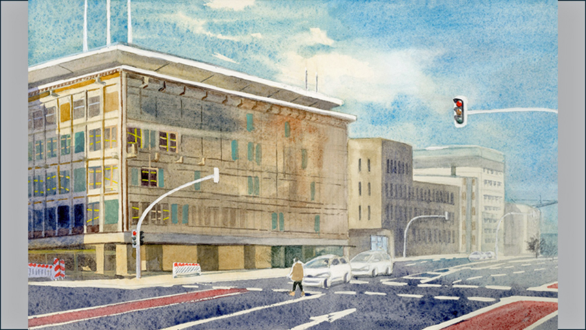 Zur „Halbzeitpause“ unseres Tagesmagazins präsentieren wir weiter eine OR-Serie mit Motiven aus unserem Stadtbild. Zum aktuellen Werk schreibt die Künstlerin: Einst waren hier Trümmer, dann ein Kaufhaus, und nun ist es ein Lost Place. Diese Skizze wurde Anfang 2025 gemacht; seitdem ist die Fassade um einiges bunter geworden.