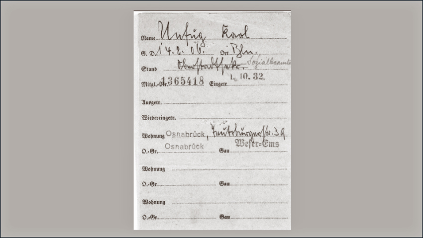 Karte der NSDAP-Mitgliederkartei für Karl Unfug Foto. National Archives