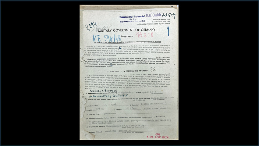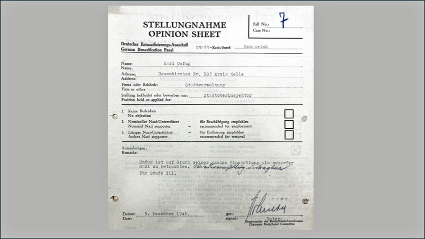 Entnazifizierungs-Entscheidung Unfug im mündlichen Verfahren Foto: Nds Landesarchiv Osnabrück