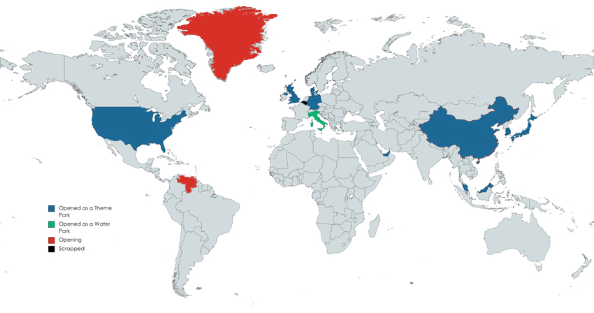 Unklar ist bisher, ob die dänische Regierung der ultimativen Aufforderung Trumps nachkommt, auf dem bislang allein dänischen Legoland einen Trump-Tower in Originalgröße mit Lego- oder Duplo-Steinen zu bauen. Falls das kommt, will Trump darauf aufbauen und plant Großes. Über das zukünftige Schicksal der weltweit verstreuten Legoländer werden wir in einer Sonderausgabe der Rundschau berichten. Nur soviel sei schon mal verraten (rot = in Planung – und das ist erst der Anfang):