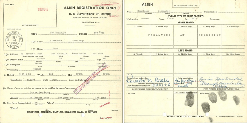 1940. Zemlinsky erleidet mehrere Schlaganfälle. Seinen Freund und Ex-Schwager sieht der inzwischen Todkranke noch ein letztes Mal, als Schönberg im November 1940 in New York seinen „Pierrot lunaire” dirigiert.