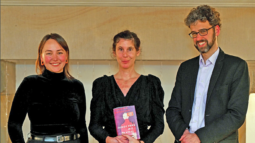 Daniela Dröscher hatte für den Abend Passagen gewählt, die direkt ins Zentrum der emotionalen und thematischen Welt des Romans führten. Besonders eindrücklich waren die gelesenen Stellen, die die Körperlasten der Familie beleuchten – die unausgesprochenen Erwartungen und die ererbten Haltungen zum Körper, von denen die junge Protagonistin sich befreien muss. Es wurden Momente der tiefen inneren Zerrissenheit, aber auch Schlüsselmomente des Aufbruchs vorgelesen, in denen die Katze als Symbol der Autonomie und stillen Heilung in Erscheinung tritt.