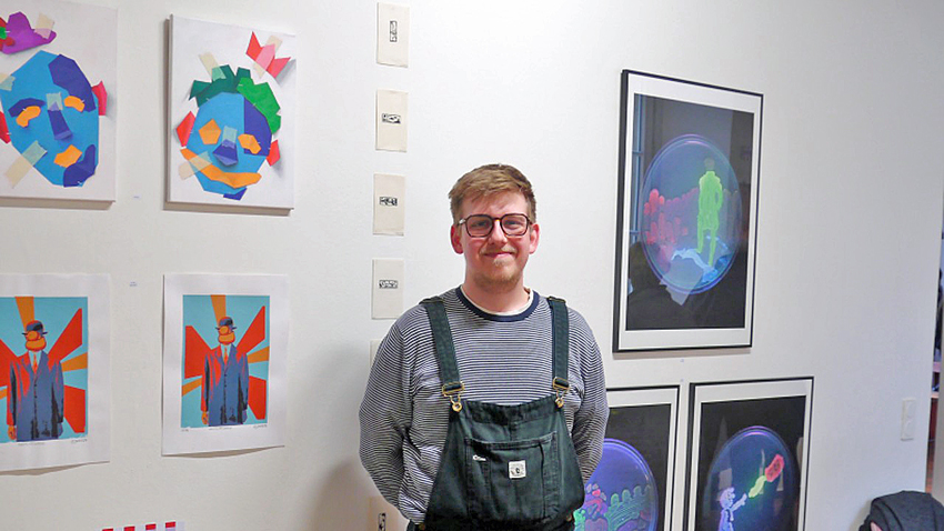 Konstantin Sauer: „Der AMU-Kunstmarkt ist ohne Frage eine tolle Gelegenheit gewesen, die eigene Kunst zu präsentieren und Kontakte zu knüpfen. Dadurch, dass die Standgebühren lediglich aus einem Kuchen oder Gebäck bestanden, fiel der Druck weg, einen bestimmten Umsatz zu erzielen. Ich konnte mich daher besser auf den Kontakt zu meinen Platz-Nachbarinnen und den Besucherinnen des Kunstmarkts konzentrieren, selbst die Kunst anderer Menschen wahrnehmen und die Zeit entspannt nutzen. Für mich hat der Kunstmarkt damit vor allem damit zu tun, mein Kunst-Umfeld besser kennenzulernen. Dass ich dann zusätzlich noch meine Kunst verkaufen konnte, war natürlich sehr schön.“