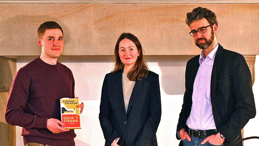 Die Atmosphäre im historischen Gebälk des Ledenhofs korrespondierte an diesem Abend auffällig mit dem Sujets des Textes. In „Goldstrand“ führt Poladjan ihre Leser zurück in das Jahr 1985 – eine Zeit des Umbruchs und der Ungewissheit. Im Zentrum steht eine junge Frau, die aus der Enge der DDR an die bulgarische Schwarzmeerküste flieht, nur um dort auf eine komplexe Gemengelage aus Sehnsucht und sozialistischer Realität zu treffen.