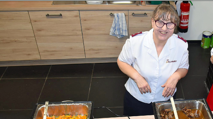Nach dem Programm rückten die Stühle enger zusammen. Bei einem herzhaften Festmenü entstanden Gespräche, die mal fröhlich, mal tiefgründig waren. Für viele Teilnehmer ist die Einsamkeit in der Weihnachtszeit die größte Last. Die Feier bot den nötigen Raum, um Sorgen für einen Moment zu vergessen und soziale Kontakte zu knüpfen. Silvia Berger, Leiterin des Osnabrücker Corps der Heilsarmee, beobachtete das lebendige Geschehen mit sichtlich gerührten Blick. Für sie ist diese Veranstaltung eine Herzensangelegenheit: „Viele Menschen, die uns auf dem Herzen liegen, wurden herzlich zur Weihnachtsfeier eingeladen.“