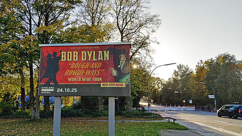 Als er zum Schluss seine vernarbte Stimme in die spirituelle Hymne Every Grain of Sand gleiten lässt, passiert etwas Berührendes. Die inbrünstige Art und Weise, wie er sich in die eigene Lyrik hineinkniet, scheint ihm selbst die Fassung zu rauben. Das klingt nicht nur nach Abschied, es ist einer. Für Lingen wohl ein endgültiger. Für Bob Dylan eher ein Stoßgebet, um noch weitere Abende dort verbringen zu dürfen, wo sein Leben spielt – auf der Bühne.