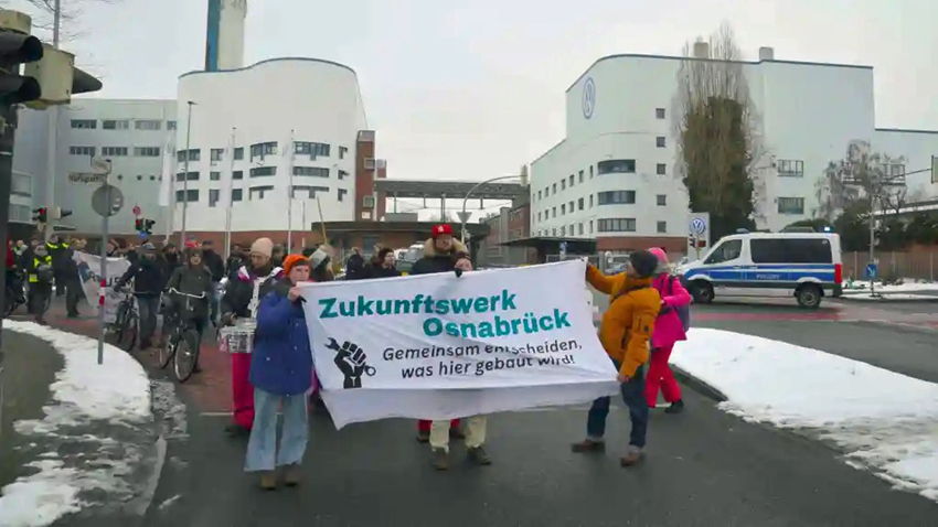 Man ließ sich auch nicht durch die Aussage des Chefs von Rheinmetall Papperger beirren, eine Übernahme des früheren Karmannwerks sei ungewiss. Gleichfalls wurde die Aufforderung des Arbeitgeberverbands Niedersachsenmetall vom September 2025, der Rüstungskonzern solle 2.300 VW-Jobs retten, nicht vergessen und abgelehnt. Die Arbeitsplätze ließen sich ganz hervorragend mit ziviler Produktion sichern, so einige TeilnehmerInnen. „Friedenspanzer“ (TAZ) brauche man da nicht.