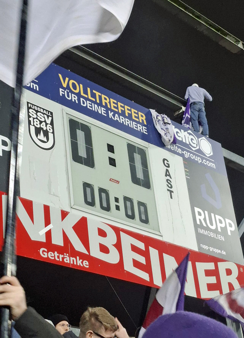 Die Luft ist nun auf beiden Seite raus. In einer Art Waffenstillstandsabkommen plätschert das Spiel dahin. Es kommt zu den üblichen Wechseln und beide Fanlager, auch – Hut ab! – das der Ulmer, feiern ihre Mannschaften.