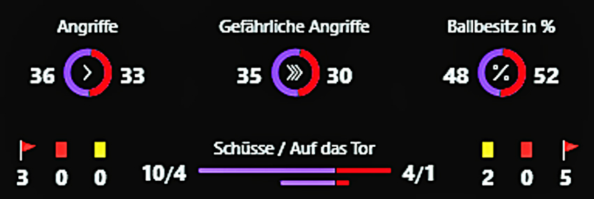 Zur Information: Unsere Spielberichte werden wie ein Liveticker direkt am Laptop verfasst und gleich nach Schlusspfiff ohne Netz und doppelten Boden ins Internet gesetzt. Die Rubrik „Zahlen, Daten, Fakten“ wird, falls notwendig, mitunter erst einige Stunden nach dem Spiel vervollständigt, dasselbe gilt für Korrekturen von Tippfehlern.