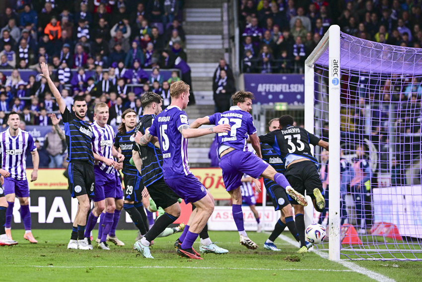 In er 26. Minute die nächste Großchance: Nach einem Traumpass von Kammerbauer über 40 Meter in den freien Raum hat Meißner auf der rechten Seite genug Zeit, um den Ball auf den einlaufenden Kopacz nach links zu spielen, der aber aus acht Metern nur das Außennetz trifft.